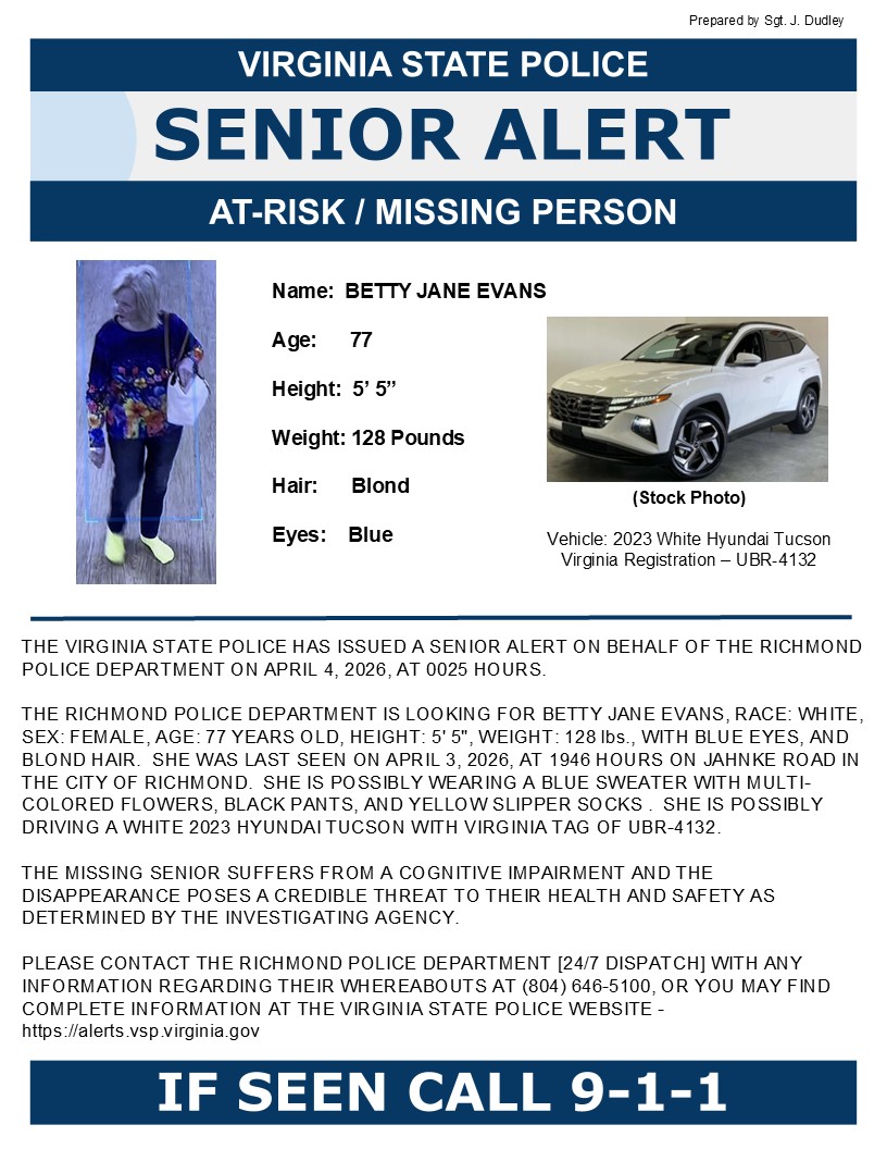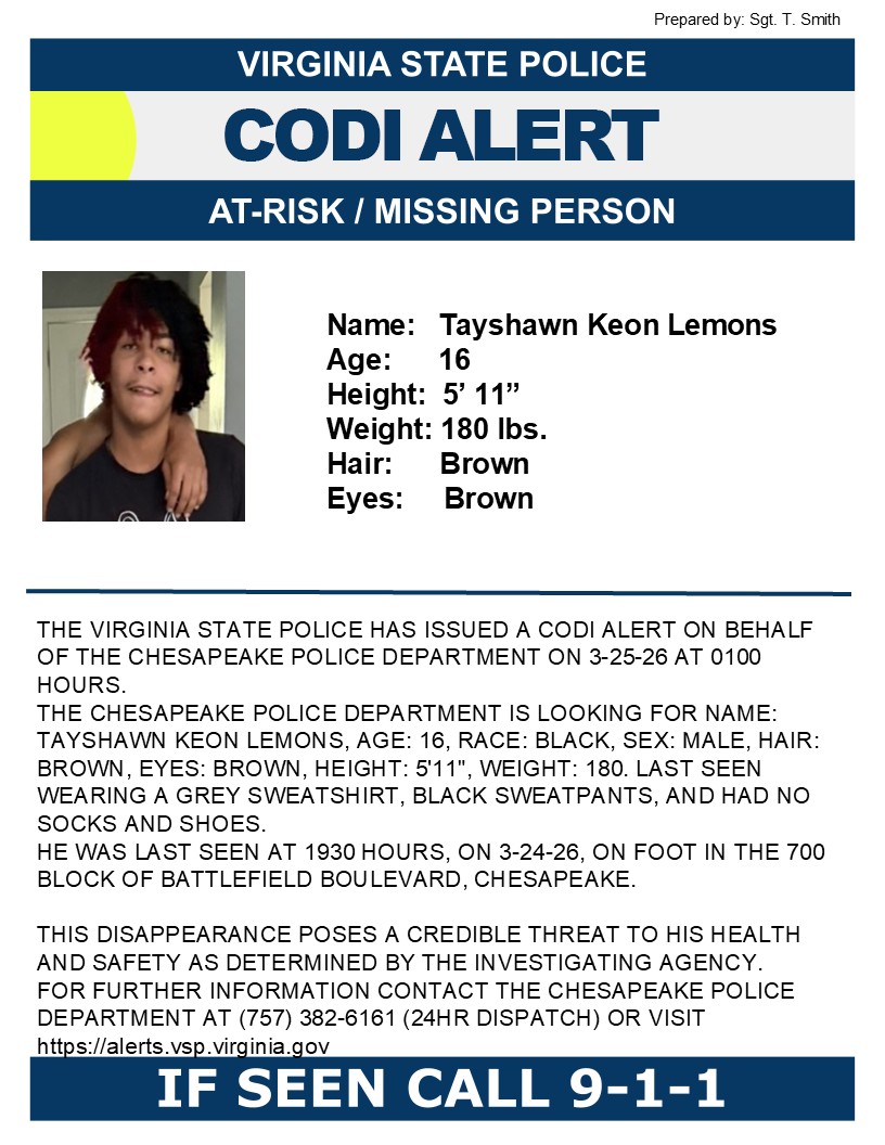 Encuentre alertas activas y en curso en Virginia en esta página. Los programas de alerta de emergencia de Virginia incluyen AMBER, CODI, Adultos Críticamente Desaparecidos, Personas Desaparecidas con Autismo, Alertas para Personas Mayores y el Programa de Alerta Azul.